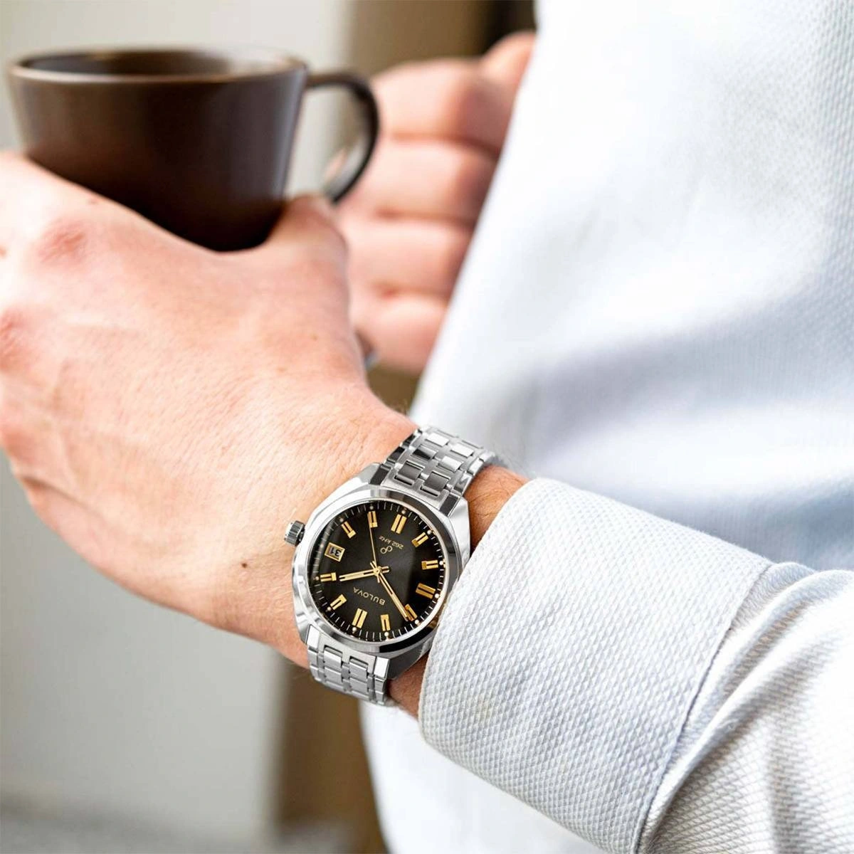 Powered by Bulova’s Precisionist movement, this watch features an 8-jewel quartz mechanism vibrating at an extraordinary 262kHz, accurate to 5 seconds per month, with enhanced resistance to temperature changes and a smooth sweeping seconds hand. Completing the look is a durable stainless-steel bracelet with deployment clasp, blending classic style with modern reliability.