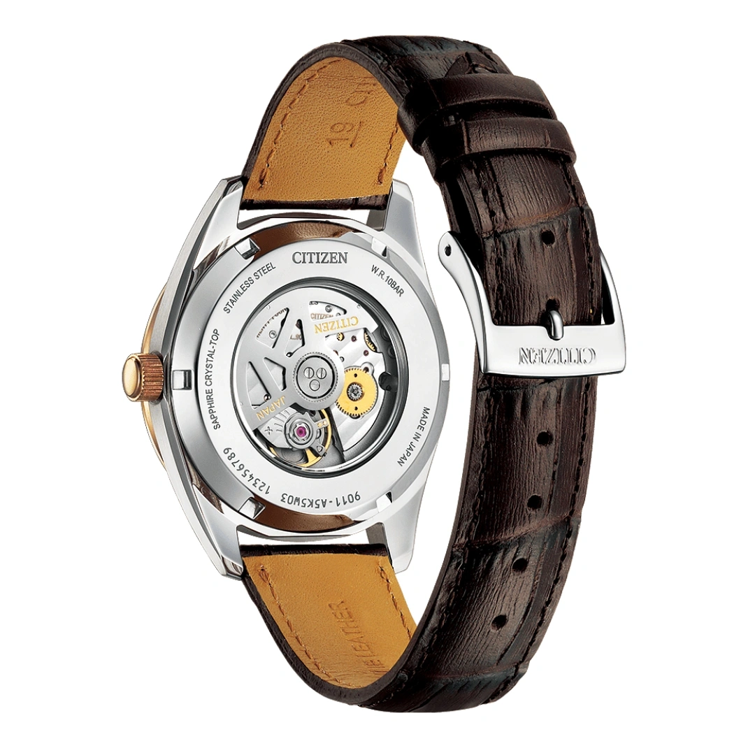 Powered by the Calibre 9011 automatic movement, the watch operates without a battery, using wrist motion to maintain energy. Protected by sapphire crystal with antireflection coating, it is scratch-resistant and durable. With 100 meters of water resistance, the Citizen NB1055-04W is perfect for everyday wear while exuding a sophisticated, timeless style.