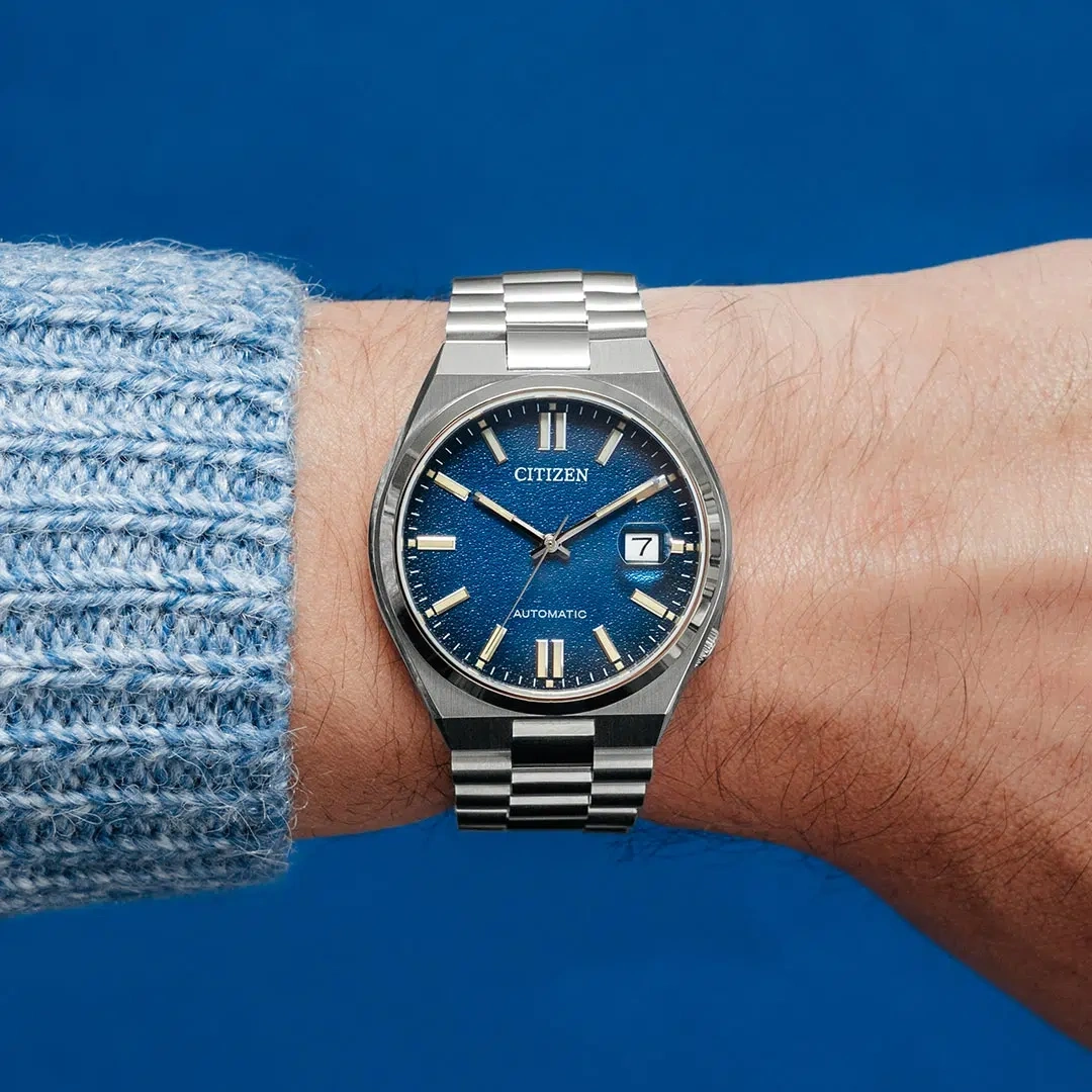 The Citizen TSUYOSA NJ0151-88L is a modern, minimalist mechanical watch from the TSUYOSA series. Its 40 mm stainless steel case and matching stainless steel bracelet offer a sleek, contemporary look suitable for everyday wear.