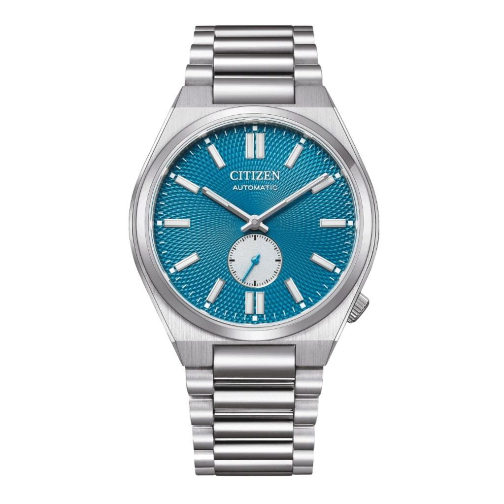 The TSUYOSA 60 Small Second Automatic delivers a refined blend of modern styling and everyday versatility. Designed with a 40 mm stainless steel case and an integrated bracelet, it offers a clean and streamlined look, further enhanced by a recessed crown positioned at 4 o’clock. The textured blue dial adds a vibrant touch, featuring a contrasting small seconds sub-dial at 6 o’clock along with silver-tone accents that provide both clarity and visual appeal.