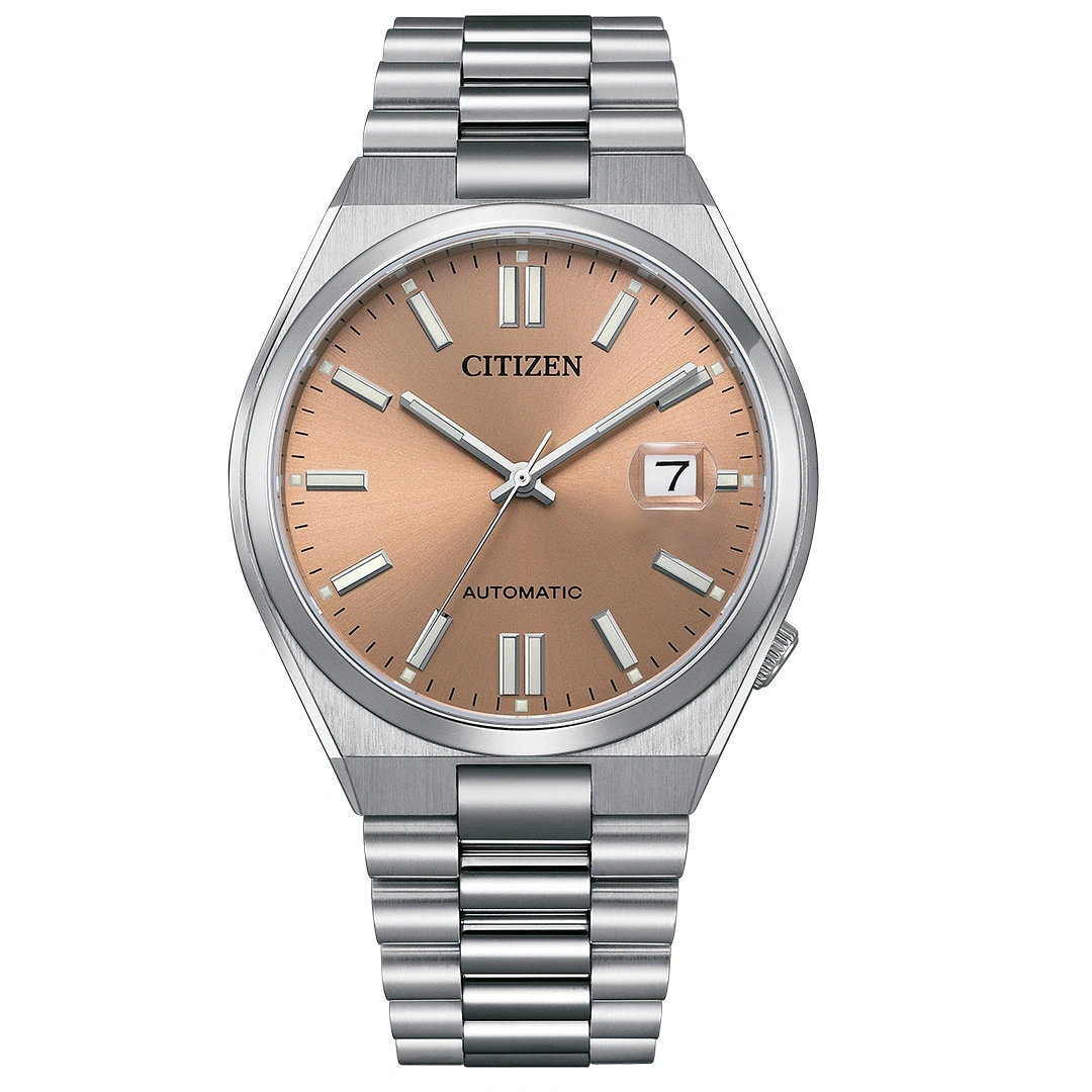 The Citizen TSUYOSA NJ0158-89Y is a refined mechanical watch from the Tsuyosa collection, featuring a unique Warm Sand dial that radiates understated elegance. Crafted with a 40 mm stainless steel case and paired with a matching stainless steel bracelet, this watch combines sophisticated style with everyday practicality. Its skeleton case back showcases the automatic movement in action, while the date display under sapphire glass with a magnifier adds functionality. Water-resistant up to 5 bar, it is suitable for daily wear and light exposure to water.
