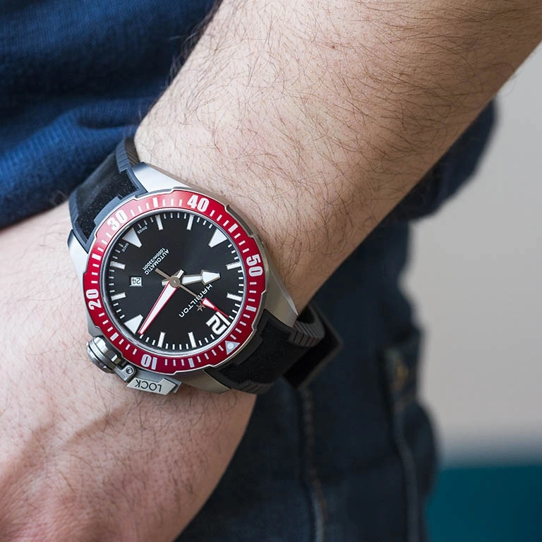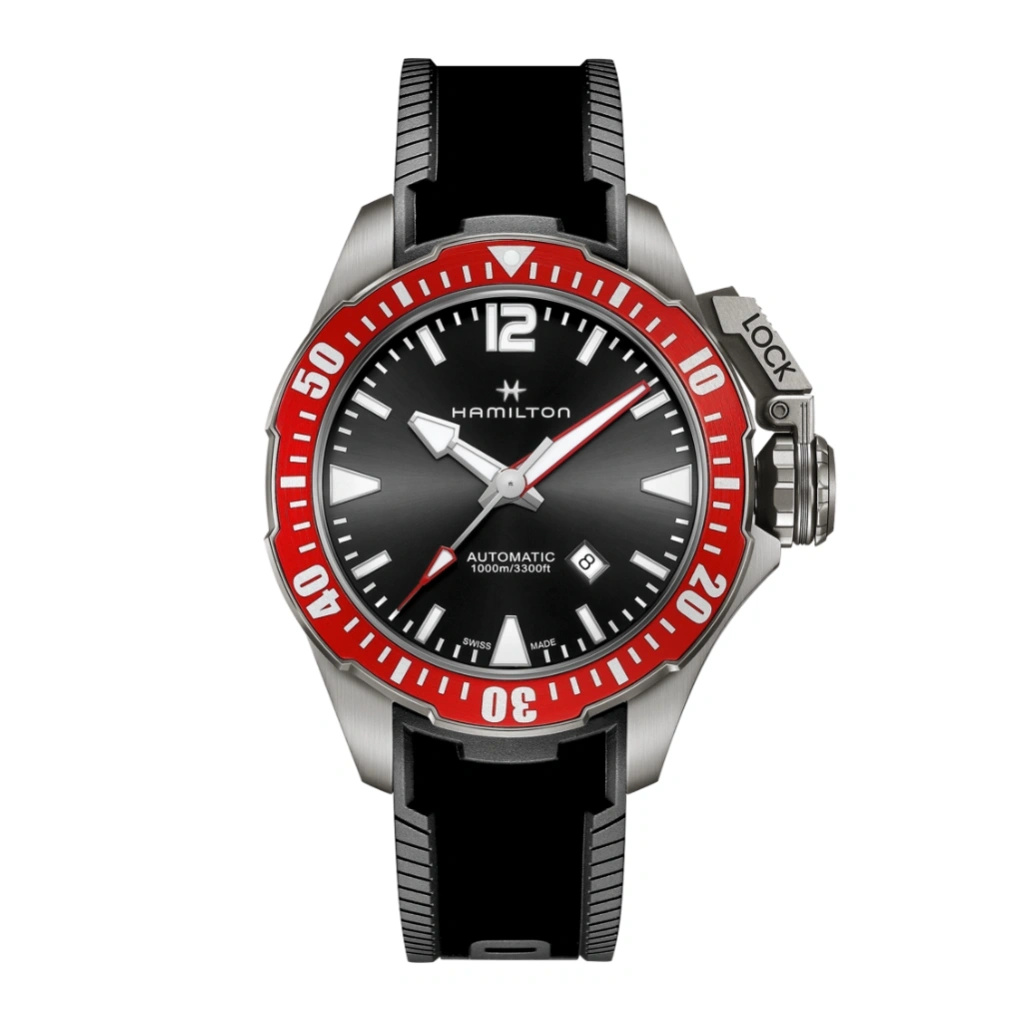 Powered by Hamilton’s H-10 automatic movement, the watch delivers an impressive 80-hour power reserve, offering extended reliability without frequent winding. Built to withstand depths of up to 1000 meters (100 bar), it includes a screw-down crown and sapphire crystal with anti-reflective coating for maximum protection. Finished with a durable rubber strap, the Frogman is not just a watch—it’s essential equipment for deep-sea adventures.