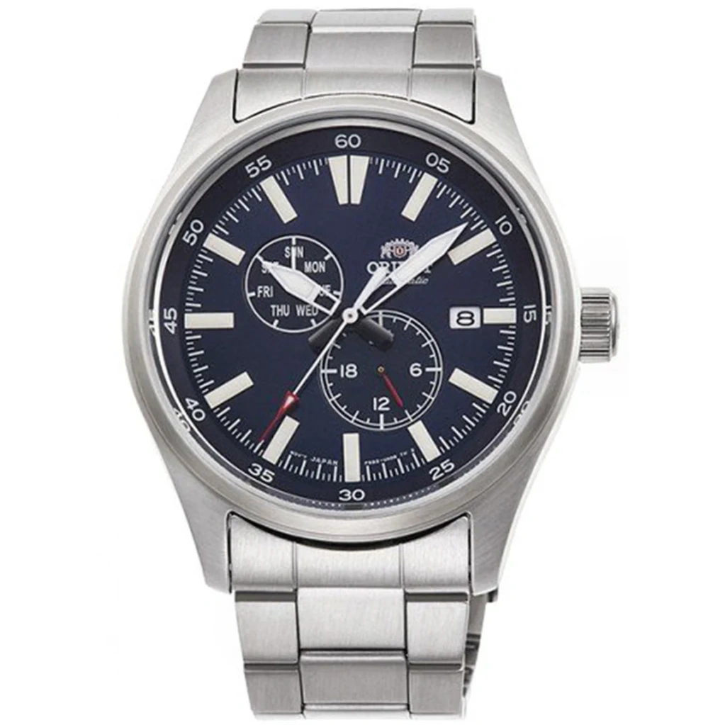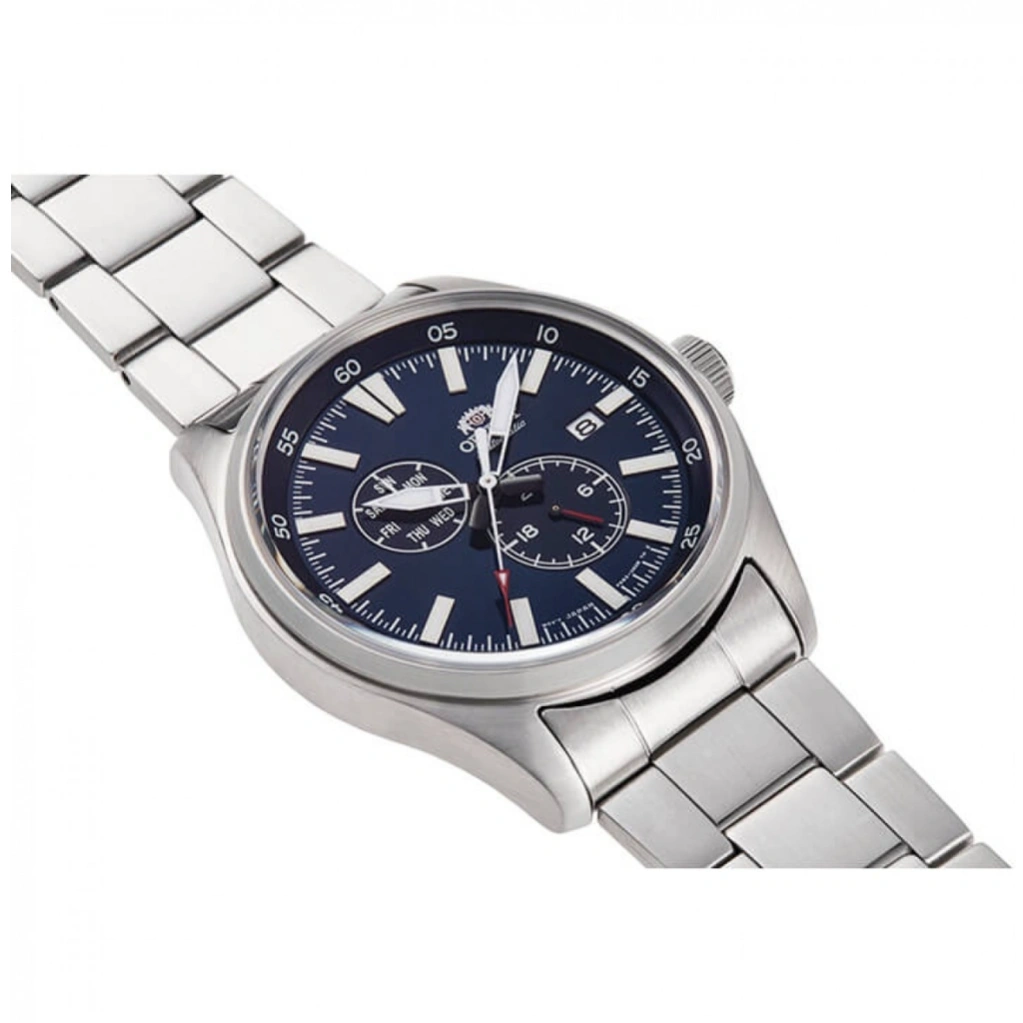 The Orient RA-AK0401L is a robust automatic watch featuring a navy dial and stainless steel case, delivering a perfect blend of elegance and functionality. Its 42.4mm case diameter ensures a strong wrist presence while maintaining a refined look suitable for everyday wear and formal occasions. Luminous hands and markers enhance visibility in all lighting conditions.
