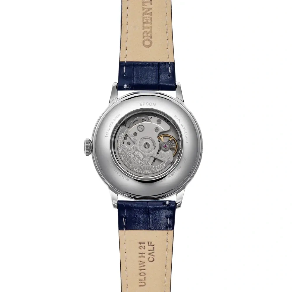The Orient RA-AC0030L is a classic and minimalist mechanical watch designed for everyday elegance. Featuring a light blue gradation dial, it offers a clean and refreshing look that pairs well with both casual and formal outfits. The simple design is complemented by a comfortable leather strap and a balanced 40.5mm case size, making it suitable for daily wear.