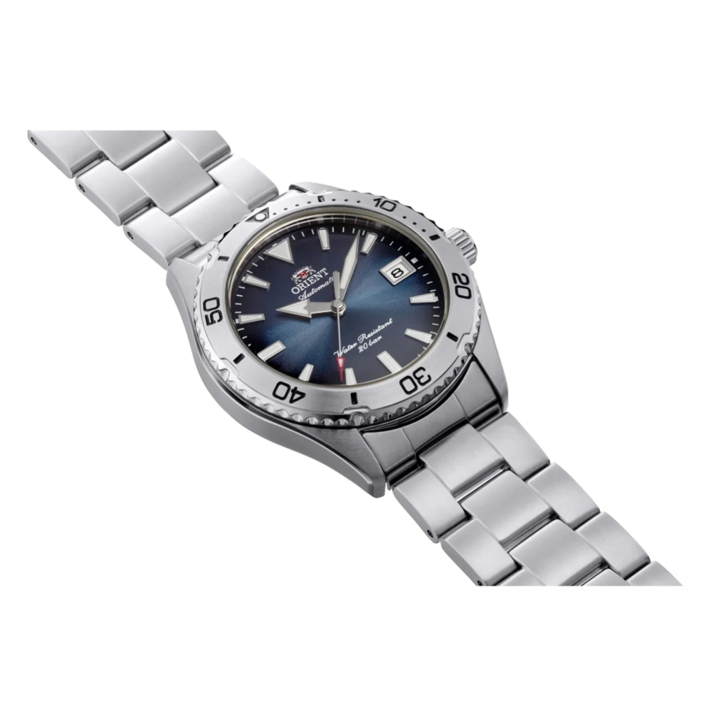 The Orient Diver Design 40 RA-AC0Q14L combines professional diving functionality with refined mechanical engineering. Featuring a navy blue gradation dial, a 39.9mm stainless steel case, and a matching stainless steel bracelet, this watch is built for underwater adventures while remaining stylish and versatile for everyday wear. The rotating bezel and screw-down crown enhance its rugged diver appearance and practical usability.