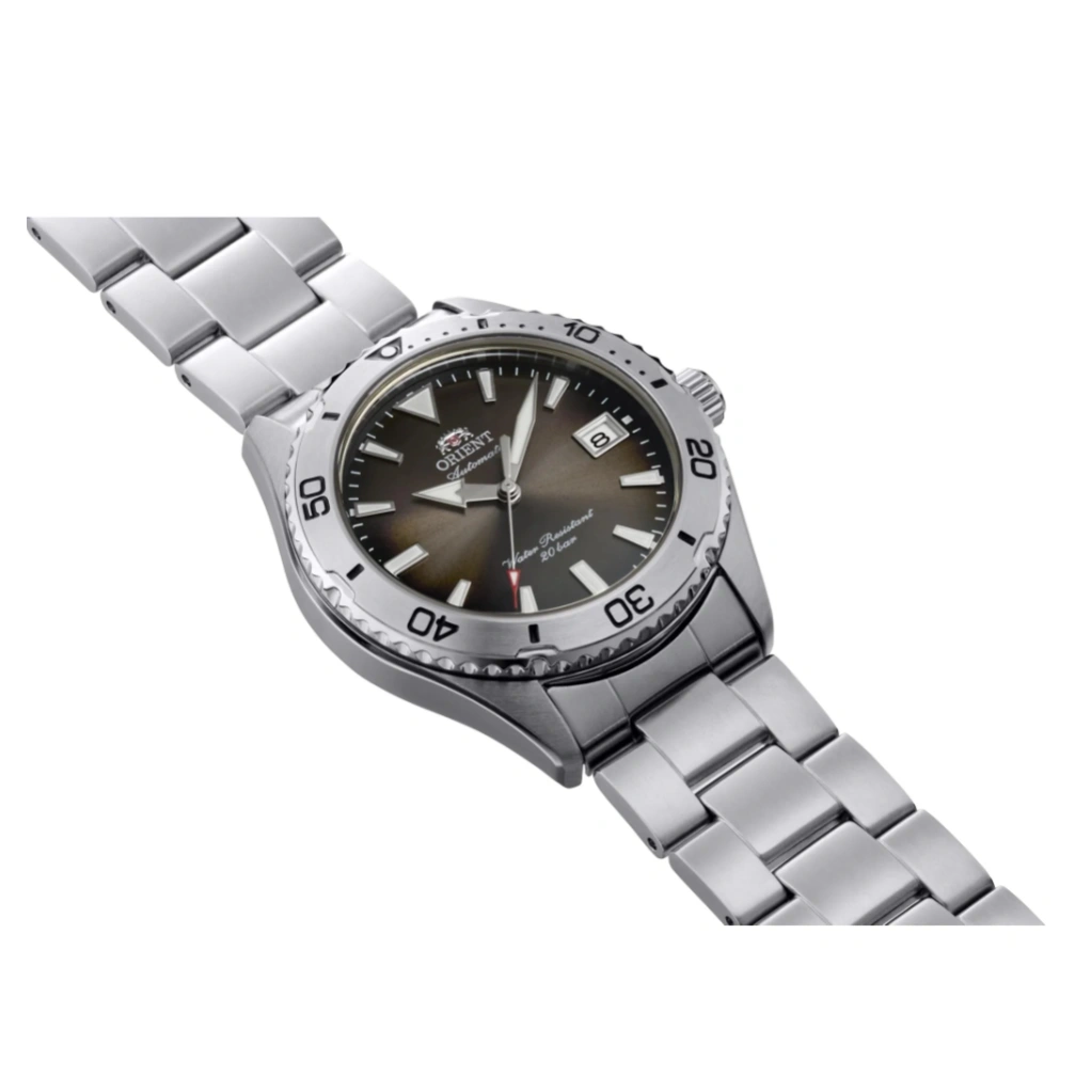 The Orient Diver Design 40 RA-AC0Q15Y combines professional diving features with precision mechanical craftsmanship. Featuring a brown gradation dial, a 39.9mm stainless steel case, and a matching stainless steel bracelet, this watch is built for underwater adventures while remaining stylish and versatile for everyday wear. The rotating bezel and screw-down crown enhance its rugged diver design and practical usability.