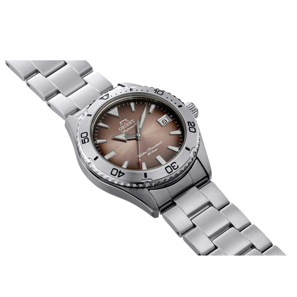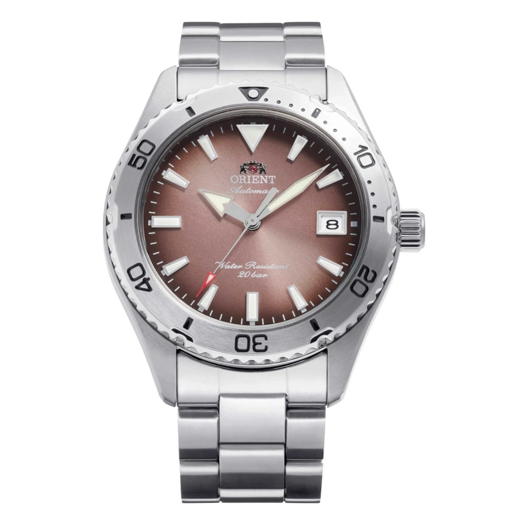 The Orient Diver Design 40 RA-AC0Q17Y combines professional diving functionality with refined mechanical craftsmanship. Featuring a copper gradation dial, a 39.9mm stainless steel case, and a matching stainless steel bracelet, this watch is perfect for underwater adventures while remaining stylish and versatile for everyday wear. The rotating bezel and screw-down crown enhance its rugged diver design and practical usability.