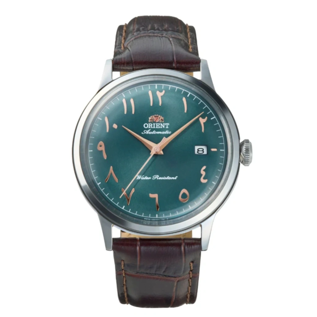 The Orient RA-AC0035E Classic & Simple Style watch features a rich green dial that adds a refined and modern touch to its timeless design. The 40.5mm stainless steel case paired with a brown leather strap creates a balanced and versatile look, making it suitable for both formal occasions and everyday wear. The exhibition case back enhances its appeal by revealing the mechanical movement inside.