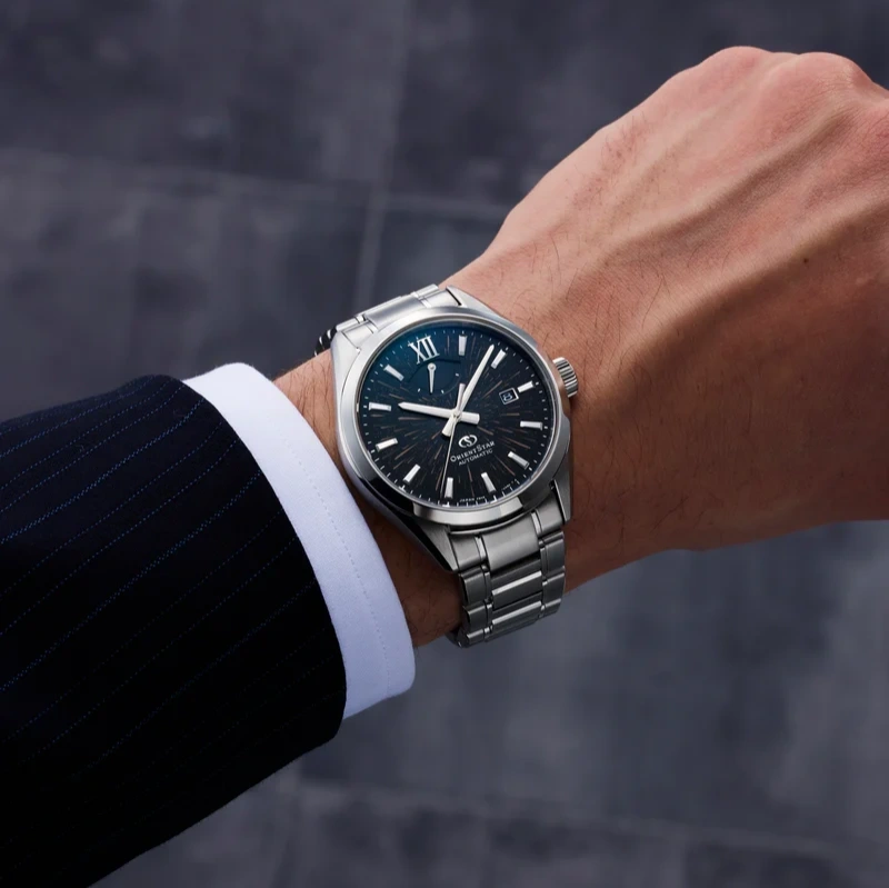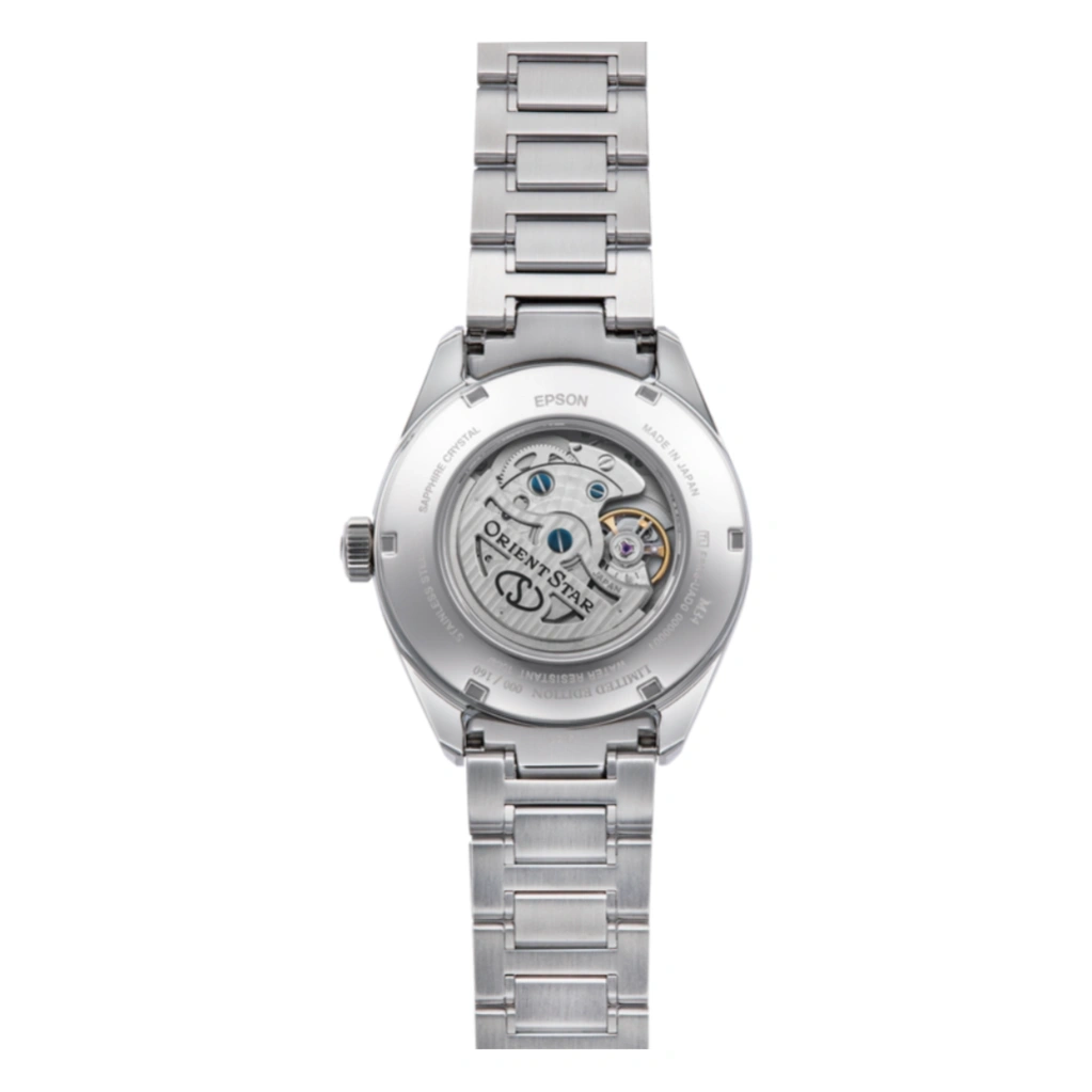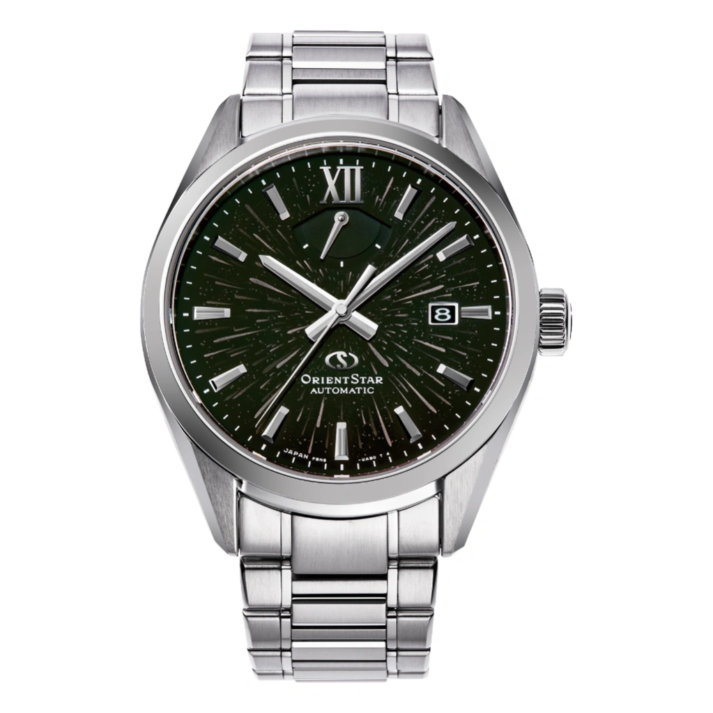 The Orient Star M34 F8 Date Limited RE-BX0009B is a striking limited-edition timepiece inspired by the Perseid meteor shower, capturing the beauty of shooting stars across a deep black night sky. Its dial is crafted using advanced nanoparticle metal multilayering technology, creating a rich sense of depth and smooth gradient effects that shift subtly with light, delivering a truly unique and luxurious appearance.