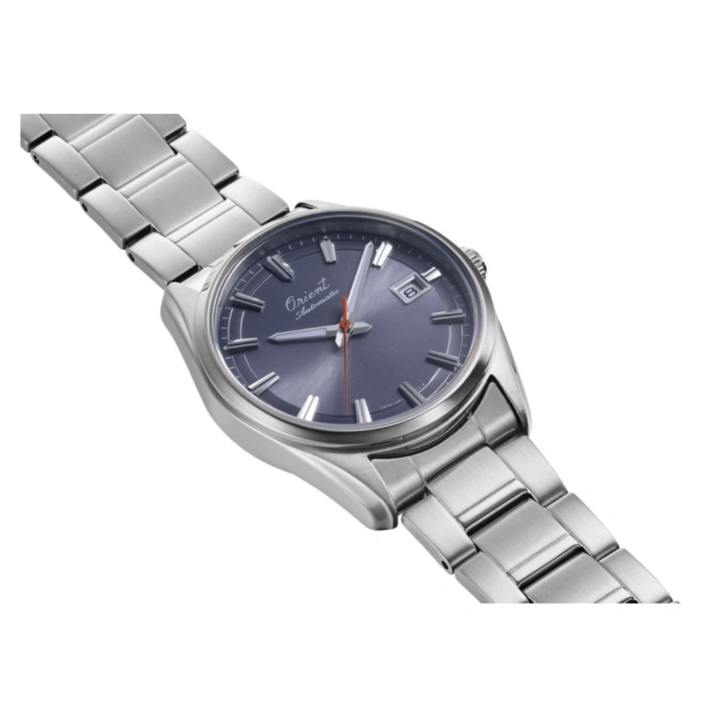 The Orient Stretto Date RA-AC0R04N offers a modern take on classic mechanical watchmaking with its sleek grey dial and refined stainless steel bracelet. Its 38.5mm stainless steel case delivers a balanced and versatile profile, making it suitable for both formal settings and everyday wear. The see-through case back adds a sophisticated detail, showcasing the intricate mechanical movement inside.