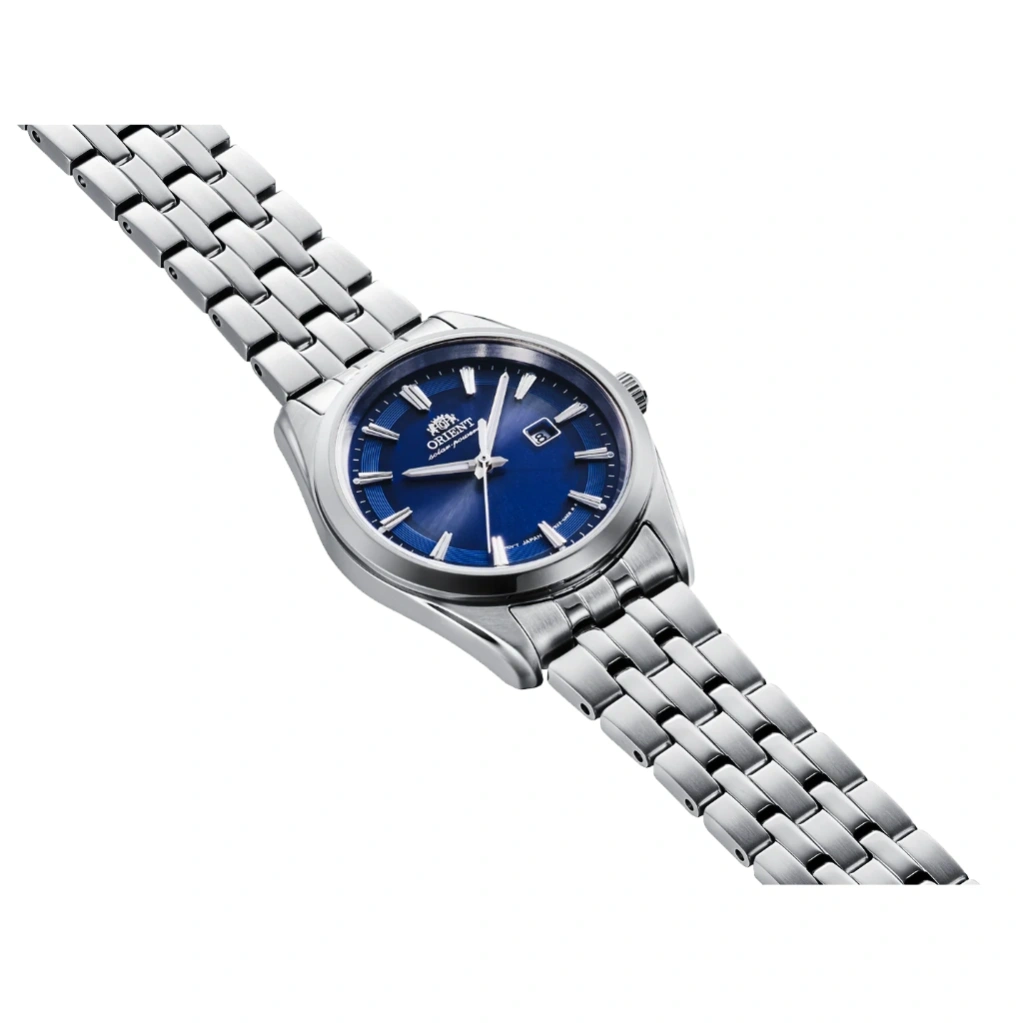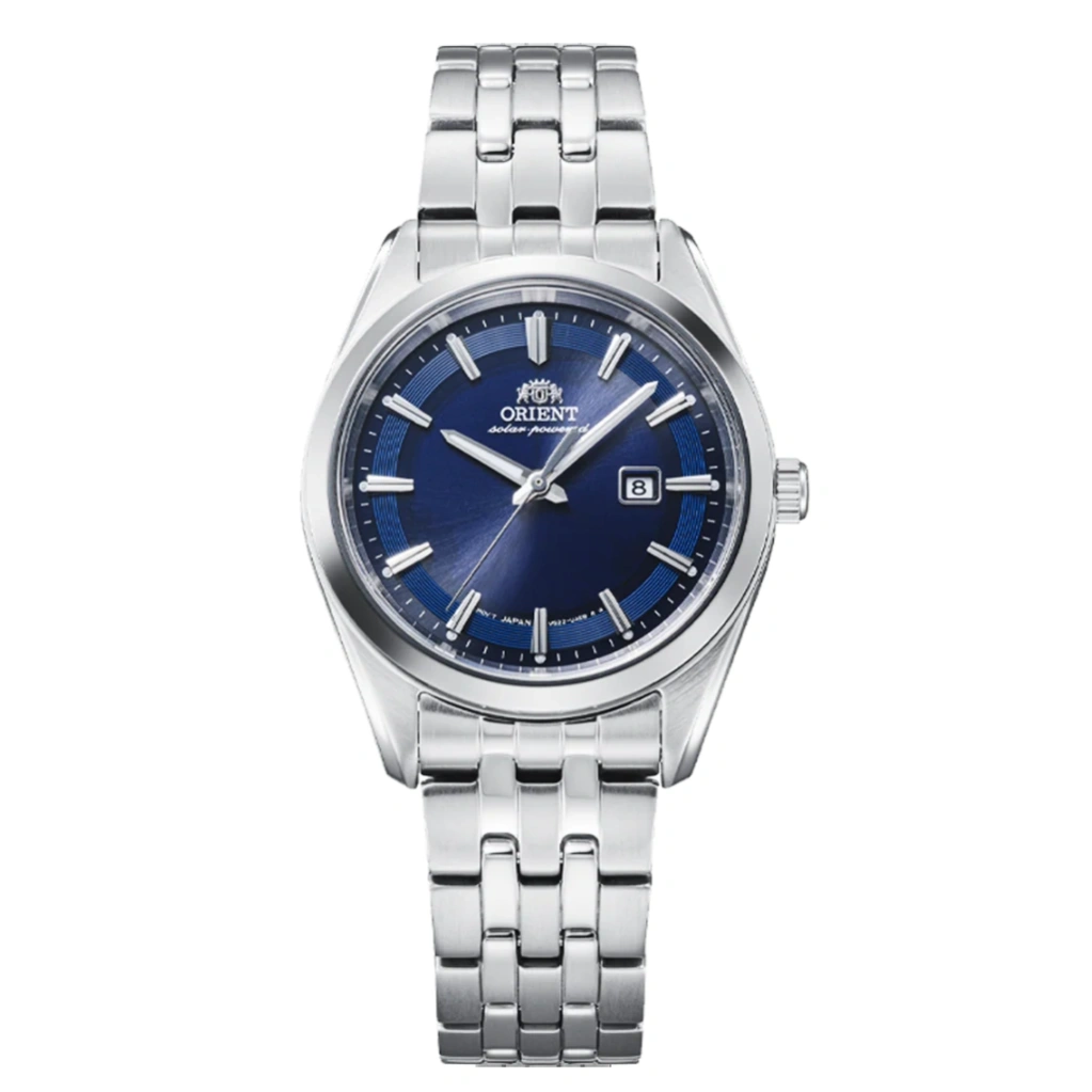 The Orient Stretto Solar-Powered RA-WG0602L offers an eco-friendly, elegant timepiece powered entirely by light. Its compact 32.1 mm stainless steel case and navy blue dial create a refined look suitable for both everyday wear and formal occasions. The flat sapphire crystal ensures scratch resistance, while luminous hands make reading the time easy in low-light conditions.